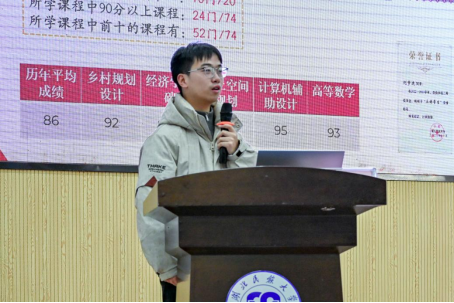文欣以成长“竹”迹为主线,讲述她入学以来向下扎根、向上生长的经历。思想是新笋扎根;竞赛是幼竹蓄力;工作是雨竹生长。她说“万物都有自己的节奏,不要因为看到别人发光就觉得自己暗淡。一定要自信、勇敢!”
