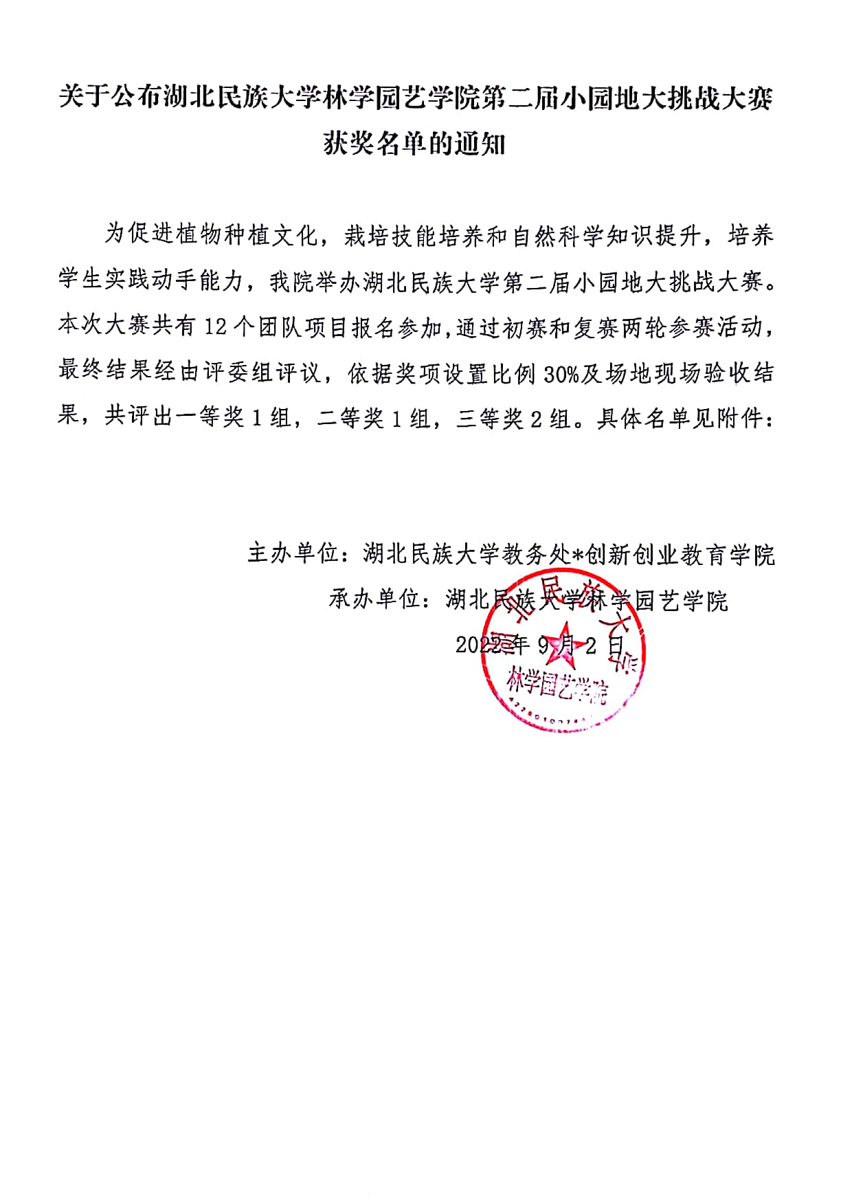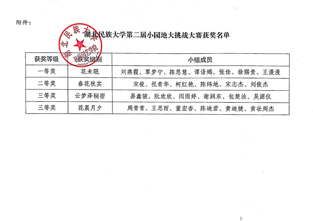 关于公布jinnian金年会林学园艺学院第二届小园地大挑战大赛获奖名单的通知