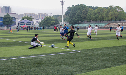本次比赛分上下两场。随着裁判一声哨响,比赛正式开始。我院各球员不断防守、进攻、越球。我院足球队队长邓常在其他球员的协助下,成功躲避对方球员的拦截,将球带至中线位置,随后一个猛冲,成功突破对方三名球员的防守,以破竹之势成功命中球门,为我方拿下至关重要的一分。上半场比赛结束,我院以3:0的比分领先对手,掌握住比赛先机。在下半场的比赛中,化学与环境工程学院试图奋起直追,但射进的两球均因为犯规而未能计入分数。我院球员则凭借着巧妙的策略以及各队员之间的协调配合,屡次突破对方防线。最终,我院以5:0的得分获得本次比赛的胜利。