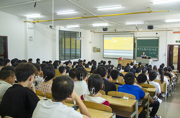 黄晶晶从校园贷和电信诈骗两大板块展开,讲述如何防范金融风险。她先是阐述校园贷的五大危害,举例各高校真实案例,进一步表明校园贷承受的是生命的代价。紧接着,她从兼职利诱、赌博、超前消费等方面阐明如何杜绝校园贷。黄晶晶表示,建立良好征信记录,塑造个人经济体系,是防范金融风险的基础。随后,她从“什么是电信诈骗”“电信诈骗常见方式”“如何识别防范电信诈骗”等方面论述如何防范电信诈骗。最后,黄晶晶从“十个守则”和“八个凡是”这两个防范金融风险的基本原则,提醒新生提高警惕,远离电信诈骗。
