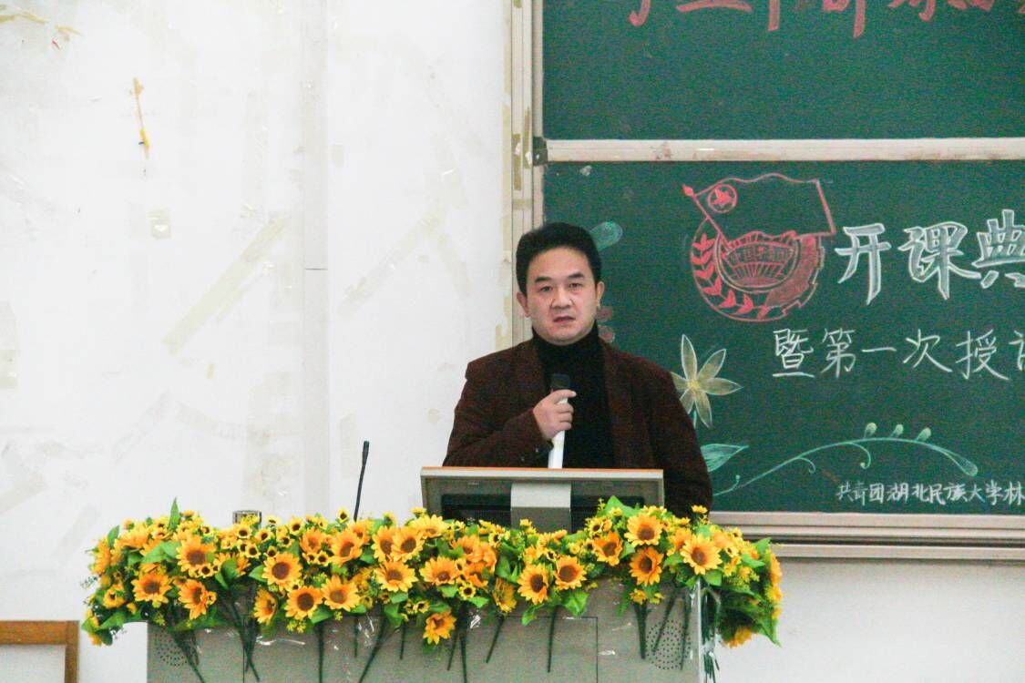 本网讯(见习通讯员 王薇 李沙沙 关蓉 刘荣/文 谭鑫鑫 何亮莉/图)11月4日,我院在修远楼5B403教室举行第十期学生干部综合素质培训暨第二次青马工程开课典礼。党总支副书记赖申昊,团总支书记刘蒙恩应邀出席,我院大一全部团学班干部参与本次典礼。