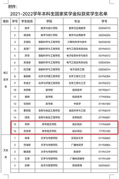苏世源和李婷国家奖学金的拟获进一步彰显我院学子勤学励志、甘于奉献的良好风貌,以奋发向上、积极进取的榜样精神激励着我院学生。