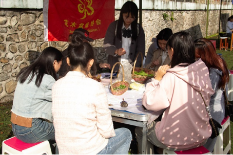 我院花木盆景协会以手工创作为主兼具展览,分签到区,拓印区,抽奖区,展区四个板块。展区板块,社团成员放置亲手栽培的植物进行展览;抽奖区板块,学生通过植物趣味知识竞答了解植物有关常识,答对三道题即可进行抽奖获得对应奖品,学生仔细思考,时不时传来欢笑声,场面氛围浓厚;拓印区板块,学生对工作人员采集的植物样品进行拓印手工制作,通过石块敲击布面,学生将新鲜植物样品的汁水印在拓印布上,绘出生命底色。敲击的“哒哒”声成为植物在金秋时节里独有的交响曲,绽放炫丽光彩。活动火热进行,趣味盎然,众多学生驻足观看,参观展品,积极加入到植物拓印的行列中。