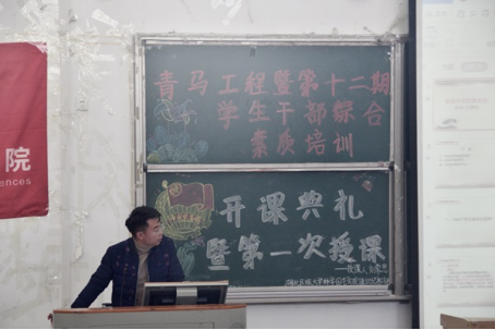 本网讯(见习通讯员 贺子墨/文 见习通讯员 李垣彤/图)11月16日,我院在修远楼5B403教室开展青马工程暨第十二期学生干部综合素质培训开学典礼暨第一次授课。我院团总支书记刘蒙恩老师,学生科辅导员刘婧老师、邢续净老师应邀出席,2023级全体学生干部及第四期青马工程学员参加本次活动。