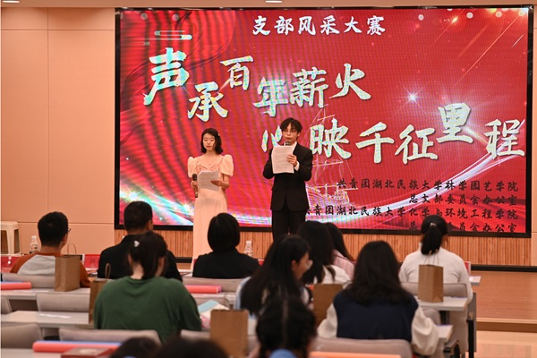 本网讯(通讯员 叶欢 向梦婷/文 向梦婷 李垣彤/图)4月14日,为激发当代青年不懈奋斗的意志,明晰当代青年建设祖国的责任与担当,我院和化学与环境工程学院在德智楼9A三楼远程教学观摩室联合举办以“声承百年薪火,心映千里征程”为主题的支部风采大赛。化学与环境工程学院党总支副书记张妮艳老师,学生科科长张艺馨,学生科辅导员覃昕、彭召元老师,我院党总支副书记胡海剑老师,团总支书记刘蒙恩老师应邀出席担任评委,我院及化学与环境工程学院学生到场参加。