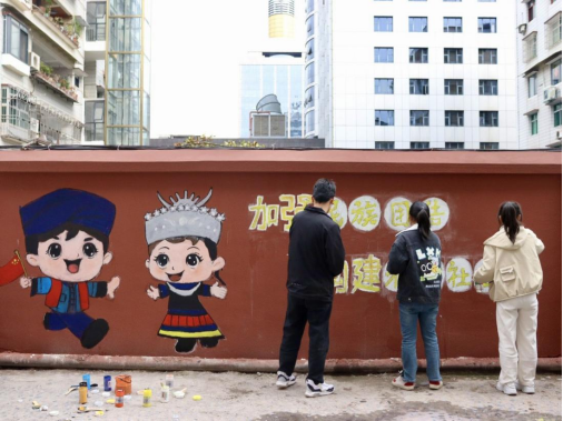 3月16日,我院青年志愿者协会联合大桥路社区开展“艺术墙绘,点亮社区”主题墙绘活动,以民族团结为创作主线,将墙绘作为宣传中华民族一家亲的窗口,为构建和谐社区贡献力量。本次活动被湖北日报宣传报道,受到一致好评。