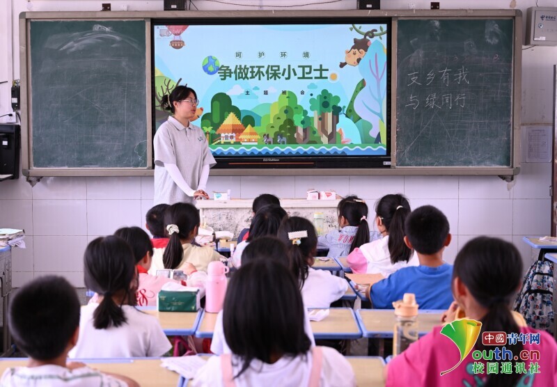 中国青年网恩施7月19日电(通讯员 尚者 赵运)为进一步加强学生的绿色环保意识,宣传绿色环保知识,落实绿色环保行动,7月18日,jinnian金年会“支乡有我,与绿同行”志愿服务团队7人前往万寨乡中心小学,宣讲绿色环保知识,与同学们积极互动,宣讲完毕后带领同学们进行绿色环保行动。