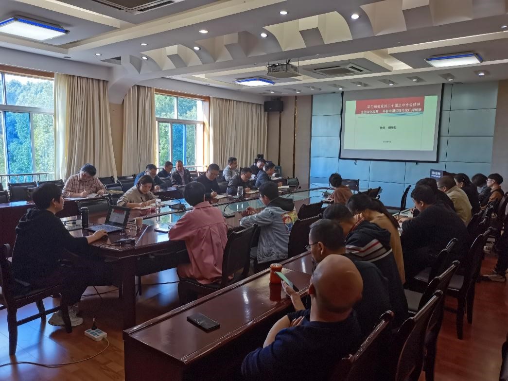 为深入学习贯彻党的二十届三中全会精神,进一步统一思想、凝心铸魂,10月31日下午,学院邀请学校宣讲团周传和副教授在四楼会议室做学习贯彻党的二十届三中全会精神宣讲。学院党总支副书记郑敏主持宣讲会,党总支副书记、院长唐利明,党总支委员、副院长向会立、方壮以及全体教职工参加宣讲会。