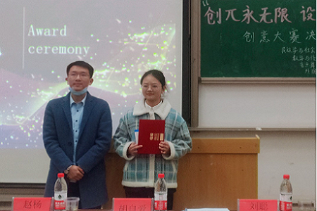 (刘聪老师为一等奖获胜队伍代表颁奖)