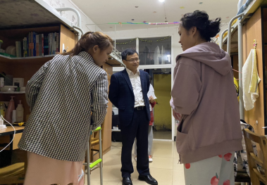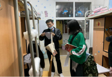 在整个走访过程中,学院领导同时也是新生班主任之一的赵魁轩书记强调,新生刚来学校一定要注意人身财产安全,督促各寝室要做好寝室卫生,加强疫情防控。叮嘱同学尽快从假期生活状态中调整过来,做好学期规划,以崭新精神风貌全身心投入到学习中去。