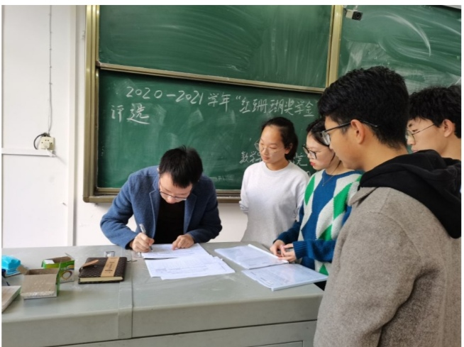 会议之前,两位同学均提前准备好相关材料及证明,确保内容的真实性。会议开始,刘聪老师针对每一项加分项目找到相应材料,根据《jinnian金年会普通本科学生奖学金评定及奖励办法》、《“红珊瑚基金”管理办法》等相关文件要求严格按照“红珊瑚奖学金”评审细则对参与评选的两位同学进行得分量化考核,按照相关规定进行统分,随后进行全院公示。