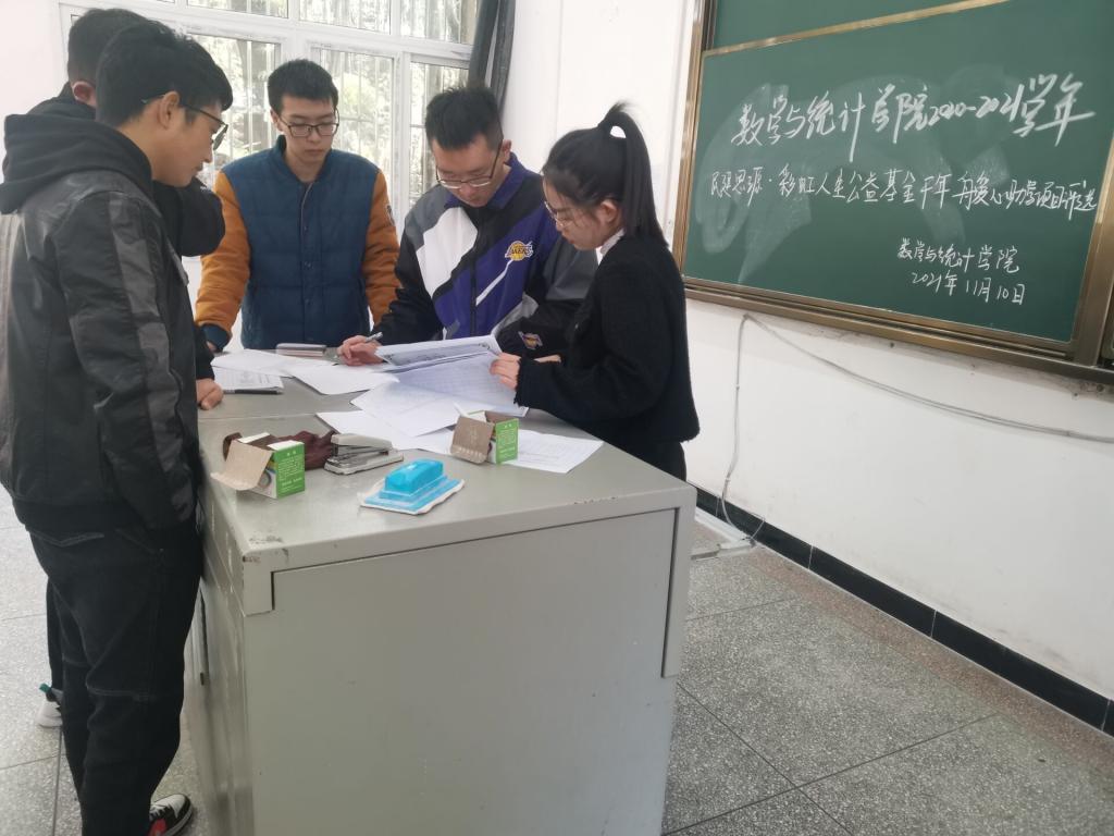 本网讯 (廖祥宇/文 张怡庆/摄 )11月10日上午,我院在3308教室成功召开2021年度“民建思源·彩虹人生公益基金——千年舟爱心助学”评选工作,团总支书记刘聪老师,学生科廖祥宇老师,学生代表李高兴、张怡庆以及两位参评学生刘悦和易宗毅参加此次会议。