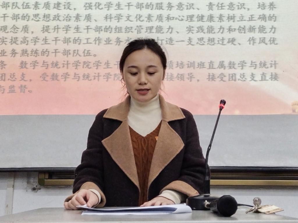 典礼伊始,主持人介绍出席老师,宣布开课典礼正式开始,全体起立,奏唱团歌。紧接着,黄老师宣读《jinnian金年会数学与统计学院学生干部培训班章程》,刘老师宣读《jinnian金年会数学与统计学院学生干部培训班管理办法》。两位老师提醒同学们要密切配合团学工作,服从安排,在干训中认真学习备考,遵守课堂纪律。开课典礼结束,各位老师有序离场。