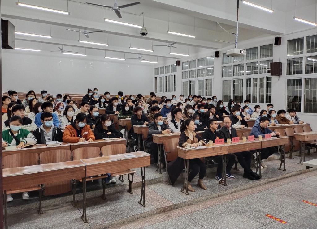 本网讯(记者 尚者 杨雪芬/文 尚者/摄)为加强学生干部队伍建设,更好地服务师生,11月27日晚,我院在3307教室开展第十六期学生干部综合素质培训开课典礼暨第一次授课。党总支副书记易金桥老师、学生科科长黄丽娜老师、团总支书记刘聪老师、学生科廖祥宇老师受邀出席。2022级全体学生干部到场聆听。