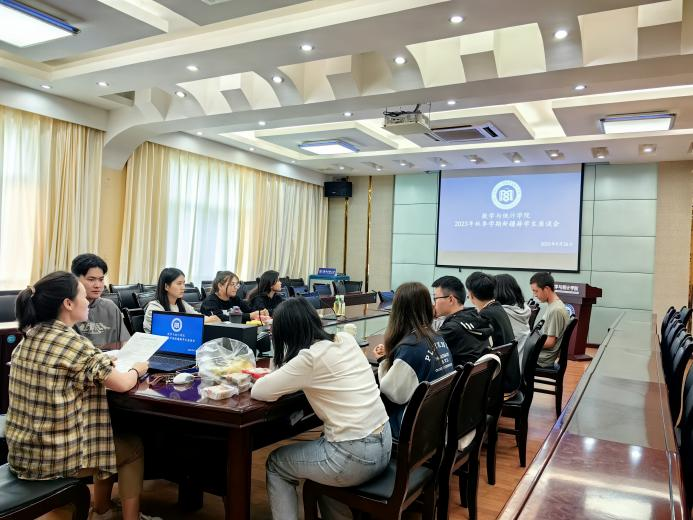 本网讯(王千千/文 王千千/摄)为加强民族团结教育,强调中秋、国庆假期安全,我院于9月26日在学院四楼会议室召开了新疆籍学生座谈会。本次会议由数学与统计学院学生科副科长黄丽娜老师主持,我院全体在校新疆籍学生和班长代表参会,部分在外实习的学生以线上会议方式参会。