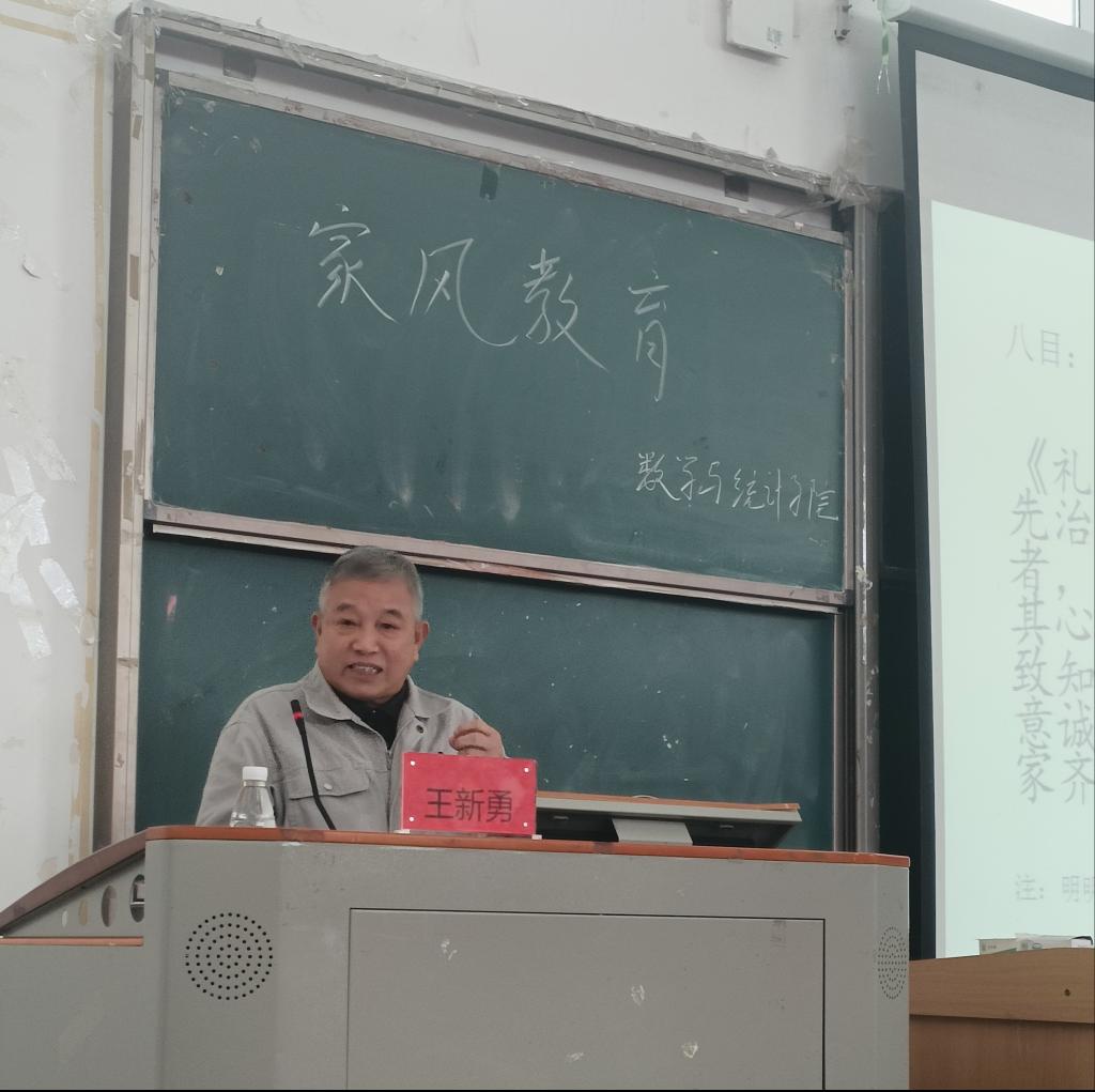 本网讯(记者 刘倩 钟颖鑫/文 刘洋源/摄)为厚植家国情怀,传承优良家风,10月7日下午14:00,数学与统计学院在修远楼5B404开展以“母爱·家风”为主题的教育讲座。金年会原文学与传媒学院教授、党委书记、硕士生导师王新勇受邀担任讲座主讲人,我院团总支书记刘聪担任本次讲座主持人,数学与统计学院2023级全体学生到场参加。