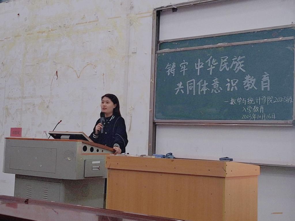 本网讯(记者 王欣 杨心怡/文 杨心怡/摄)为加强同少数民族学生的沟通与交流,建立各民族一家亲的良好校园氛围。10月16日晚19点,我院在修远楼5B403举行2023级新生“铸牢中华民族共同体意识”专题讲座,学工处民族事务办公室谭俊妮老师担任主讲人,团总支书记刘聪老师、学生科廖祥宇老师到场出席会议,2023级全体新生到场聆听。