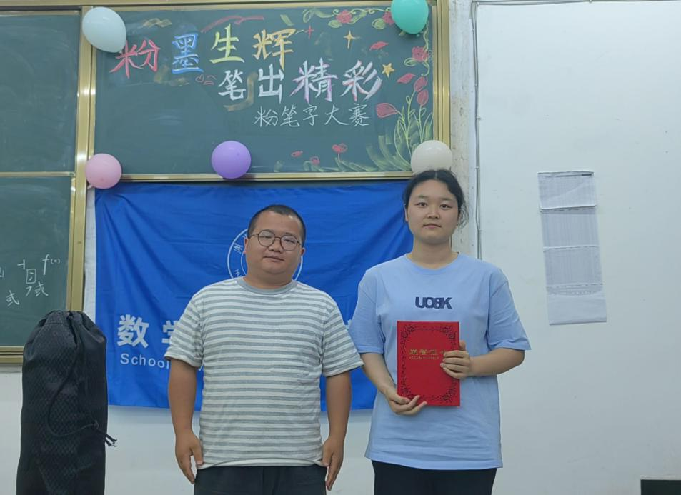 随着科技的发展,多媒体教学逐渐普及,但传统的板书教学方式仍然有其不可替代的魅力。粉笔不仅仅是传授知识的工具,粉笔字更是一种文化和艺术的体现。4月26日晚,我院于3308教室成功举办“粉墨生辉,笔出精彩”粉笔字大赛决赛。担任本次活动的评委有研究生处向鑫老师,教师教育学院专职教师刘星娜老师,数学与统计学院专职教师余世群老师以及数学与统计学院研究生赵小芳。