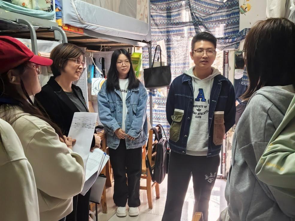 走访过程中,老师们不断强调消防安全、财产安全、人身安全,并关切地询问学生近期学习进展,针对大学生活给予相关建议。同时鼓励学生们共同参与寝室清洁工作,增进宿舍成员的沟通与协作,增加团队凝聚力。