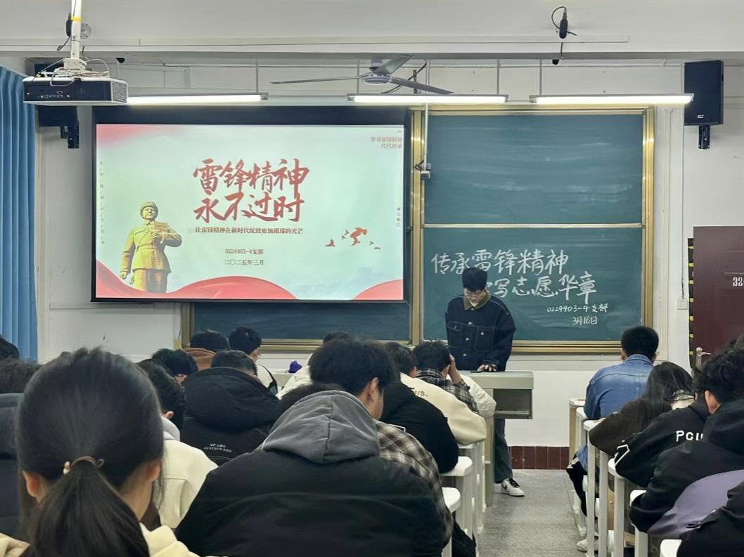学生齐唱团歌并庄严宣誓,班委通过讲述雷锋的生平事迹,深入剖析雷锋精神,从 “螺丝钉精神” 到 “全心全意为人民服务”,引导学生将雷锋精神践行到日常生活中。现场互动频繁,同学们积极响应,深刻领悟雷锋精神的内涵。
