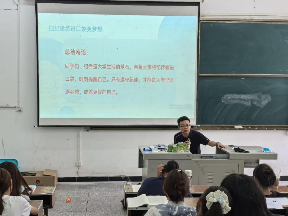 讲座呼吁全体新生要将纪律要求内化于心、外化于行,做到日常自律、互相提醒,共同维护校园秩序与安全。
