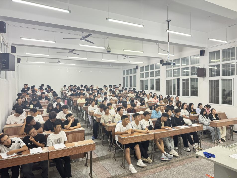 活动中,李子君老师围绕“志愿服务”与“社会实践”两大主题展开讲解。她结合学院实际与优秀学子案例,解读了“第二课堂成绩单”及学生综合测评在学业成绩、科研创新、文体活动、志愿服务等方面的具体指标与要求,指出志愿服务与社会实践既是奖助学金评定的重要依据,更是大学生成长成才的关键环节。她特别强调社会实践作为大一、大二阶段的必修内容,与综合测评、学分认定、评优评奖紧密相关,并通过往年调研、支教、竞赛等案例,引导新生在实践中锻炼能力、提升素质,实现知行合一与全面发展。现场新生们认真聆听、积极记录。