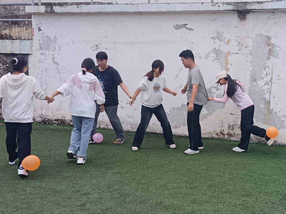 活动现场设置“名字接龙大作战”“气球大作战”两项趣味游戏。在“名字接龙大作战”中,同学们围成圆圈,通过自我介绍与报数互动,迅速拉近了彼此距离,现场气氛轻松热烈。