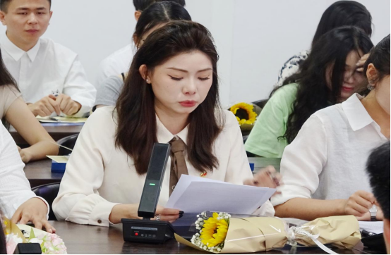 座谈会上,来自音乐学专业周星雨、舞蹈学专业赵浪莎、航空服务艺术与管理专业杨雪英3位毕业生代表发言,各自回顾了在校学习成长的难忘岁月,抒发了对学院的感恩和祝福,畅谈未来的规划与憧憬,同学们在发言中一度哽咽、落泪,让现场充满不舍氛围;毕业班班主任代表蔡抒洗老师从学校校训“博学 博爱,立人 达人”出发,寄语毕业生们始终保持谦逊地心态对待新知识,孜孜不倦地学习新知识,为中华民族的伟大复兴贡献自己的力量。