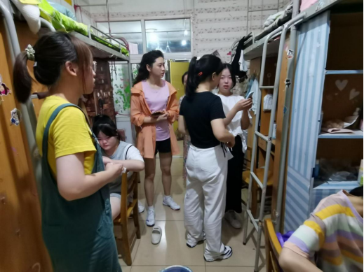 学院党总支书记张蕊在走访时强调到,同学们要在疫情常态化的前提下,做好自我防护,同时要尽快适应大学校园生活,做好大学期间的生涯规划。学院老师们在走访时与每个新生亲切沟通,了解同学们当前需求,并就大家关心的空调安装进度做出耐心解释。