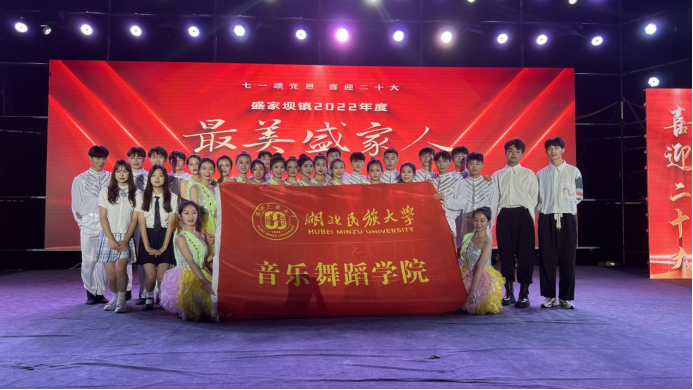 据悉,为深入、扎实开展“党员干部下基层察民情解民忧暖民心”实践活动,此次,音乐舞蹈学院还受到盛家坝镇党委、政府邀请,组织了部分师生参加“七一颂党恩 喜迎二十大”——盛家坝镇2022年度‘最美盛家人’致敬礼活动,并送上了精彩文艺节目,用实际行动助力乡村振兴战略。