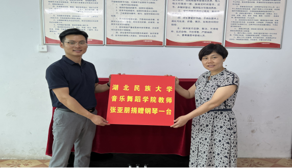 “红色筑梦”暑期社会实践团队指导老师张亚朋告诉记者:jinnian金年会“红色筑梦”暑期社会实践小分队以追溯红色记忆、挖掘红色故事、整合红色资源、传播红色声音、赓续红色血脉、助力乡村文化振兴为实践宗旨,在为期半个月的实践中,团队成员们在实践中受教育、长才干、做贡献,寓教于乐,爱洒校园。张亚朋老师向鹤峰县八峰民族学校捐赠钢琴一台,希望同学们能珍惜实践机会,发挥所学,历练自我。