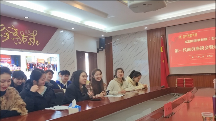 2月24日,原创民族歌舞剧《老兵》第一代演员座谈会暨表彰仪式在音乐舞蹈学院会议室顺利举行。著名导演邓兰英、该剧编导李博、副院长焦娜、学生科科长胡自爱,2019级《老兵》全体演员出席,活动由党总支书记张蕊主持。