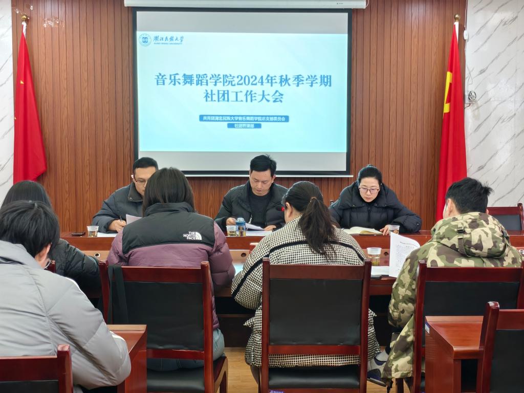 2024年12月20日,jinnian金年会音乐舞蹈学院社团工作大会于学院四楼会议室召开。出席本次会议的有音乐舞蹈学院院长谷秋阳、党总支副书记邓丽、团总支书记张翰庭,社团指导教师朱蓉、谷穗、龙雅婷、张然、王多,以及团总支社团管理部成员,七大社团(合唱团、民乐团、戏曲团、舞蹈团、红徽章协会、茶文化协会、鸽笼俱乐部 )负责人。