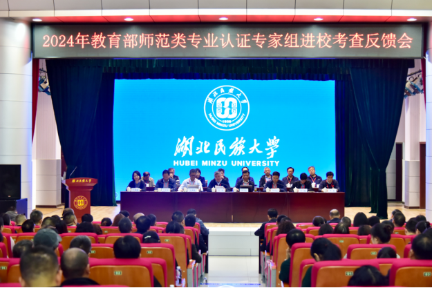 叶忠反馈现场考查整体情况。专家组对学校和四个专业前期所做的工作、付出的努力、取得的成绩和形成的特色亮点给予肯定。专家组认为,学校扎根山区,坚守师范办学底色不动摇,始终坚守师范初心,厚植教育情怀,立足湖北、面向西部,坚持服务民族地区、服务国家战略。自国家启动师范类专业认证以来,学校积极响应、全员参与,围绕认证主线和底线要求,能反向设计面向产出的人才培养体系,能聚焦课程建设,推进认证重心下移,推动广大教师深度落实专业认证必然要求,本次进校考查,从认证的组织、认证的建设和认证的成效显示出学校对于认证理念和标准的认同,也显示出对师范专业的责任和信心。专家组要求要进一步按照认证标准加大力度、补齐短板,特别是学科教学师资队伍组建;进一步推进面向产出认证的理念落地生根;进一步发挥基层教研组织作用,推进认证聚焦课程。
