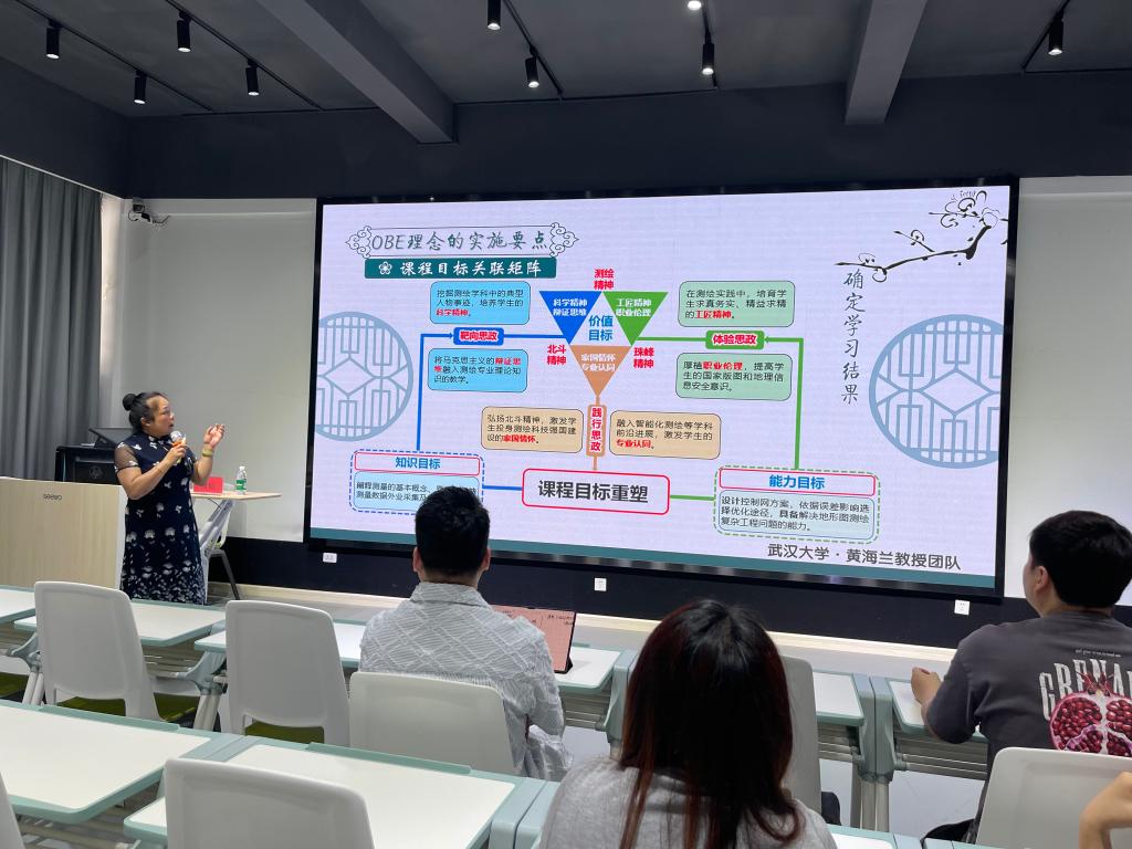 周韬教授从教学创新基本要求、教育理念内涵及应用、教学创新的逻辑与要素、教学创新能为我们带来什么、教学创新案例经验分享五个方面展开剖析。立足建设教育强国,分析了教学创新大赛的必要性,指出高等教育是龙头,核心是守正创新,坚持“五育并举”,全力推动高等教育“质量革命”。她从提升国家硬实力、文化软实力、生态成长力和全民健康力四个方面理解创新,着重讲了OBE教育理念的内涵及实施要点,由此凝练构建课程体系,鼓励老师们要善于进行教学创新评价反思。