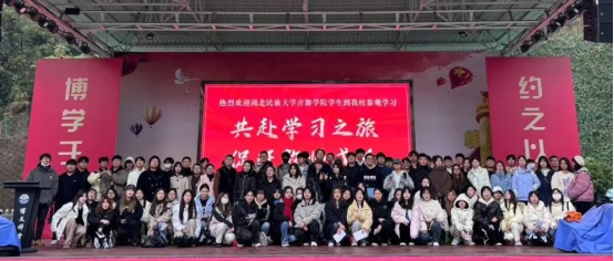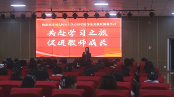 2023年11月25日上午,jinnian金年会音乐舞蹈学院音乐系副主任龙林老师、22级音乐学班主任张岩老师带领2022级全体音乐学专业学生到恩施市博文学校观摩音乐课程教学。