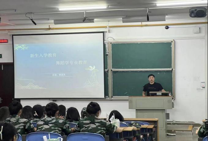 舞蹈学专业负责人黄涌天老师从专业人才培养、师范专业认证、就业方向、专业前景等入手向同学们作了详细介绍。他指出专业采用综合化发展的新教学体制,顺应转型、强化应用,充分利用一切展演及创新活动,不断提高学生的专业能力和综合素质。黄涌天老师希望大家确立自己的人生目标,接受新的挑战并为此坚持不懈的努力。