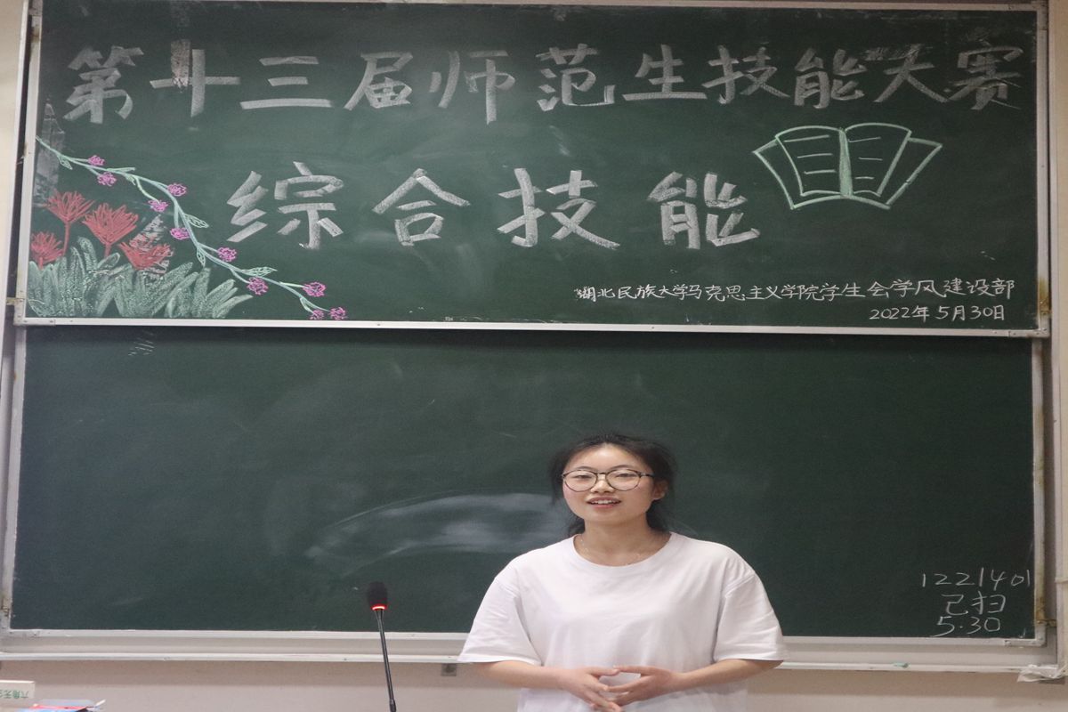 5月30日晚,综合技能比赛在德智楼9B208教室顺利举行。我院教师万俊、黄朝东担任评委。此次比赛包括教案设计、模拟授课和即席演讲三个部分。经过最终评定,肖杰、刘颖、胡小亿获得比赛前三名。