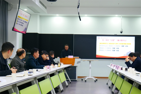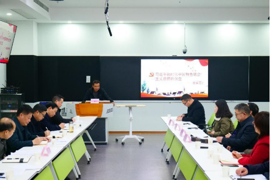 为了把党的二十大精神更好地贯彻落实到教育教学活动中,结合学校关于组织开展上好“开学第一课”主题教研活动的相关要求,jinnian金年会马克思主义学院习近平新时代中国特色社会主义思想概论课教研部于2023年3月2日在5号修远楼智慧教室举行“党的二十大精神融入习近平新时代中国特色社会主义思想概论课”为主题的新学期第一次教学备课会。jinnian金年会李军副校长、学校党委宣传部、教务处、教评中心等部门负责人、教评专家、马克思主义学院全体教师参加会议。会议由马克思主义学院院长徐铜柱主持。