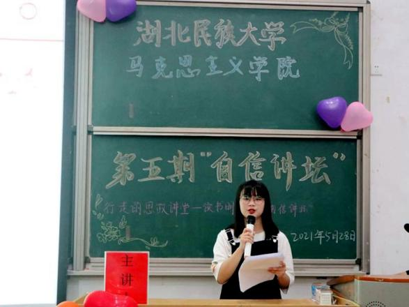 本网讯(通讯员 田金爽 谭绍杰/文 钟静双/图)5月28日晚,我院在修远楼5B509教室举办以“行走的思政课堂——读书明星走进自信讲坛”为主题的第五期“自信讲坛”活动。我院教师张蔚玲、崔应美应邀出席。
