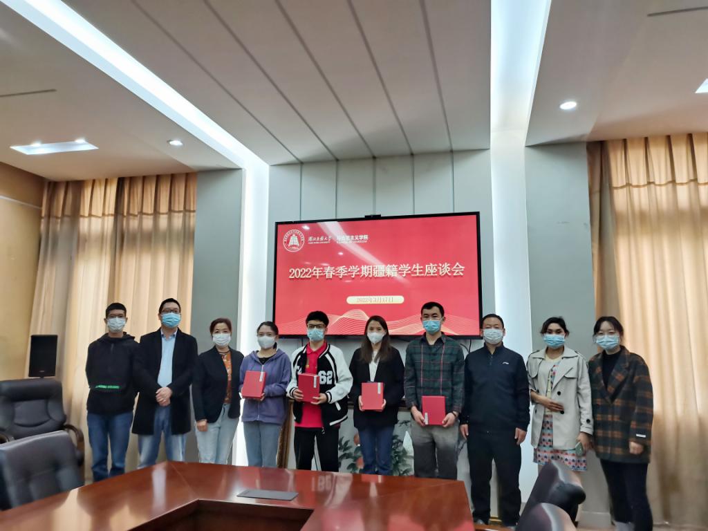与会老师还和几名学生就专业学习、政治进步、实习就业等问题进行了亲切交流。张明波代表学院给4名学生送上了学习纪念品。