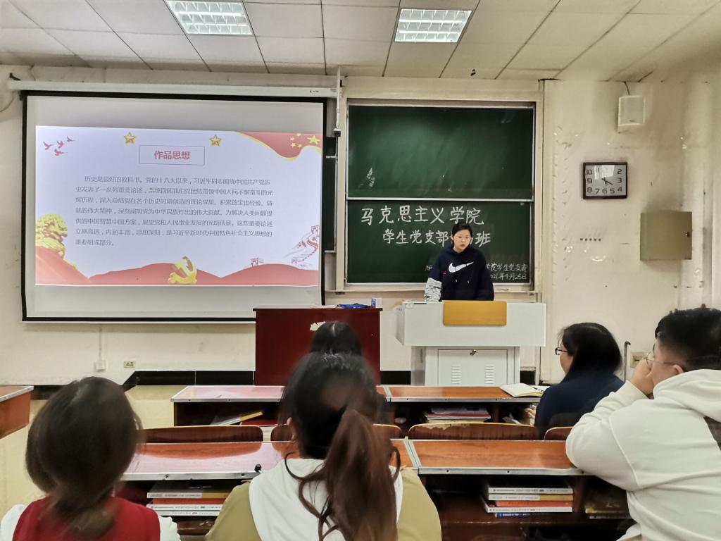 4月25日下午,第二次党史教育学习在德智楼9B210教室开展。谭玲领学《论中国共产党历史》,她指出,回望过往的奋斗路,眺望前方的奋进路,必须把党的历史学习好、总结好,把党的成功经验传承好、发扬好。其次,全体成员观看视频《中国共产党为什么“能”》。最后,杨婷带领全体党员对《中国共产党简史》相关内容进行了学习,支部成员就学习内容进行了交流发言。