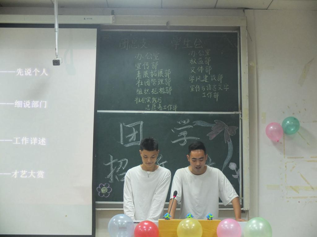 学院团总支学生会12个部门负责人依次进行招新宣讲,各部门负责人分别围绕部门设置、职责工作、日常活动等方面展开宣讲,介绍各部门性质、特色,展示部门的团队精神与日常氛围。其中,在推荐部门时,各负责人建议新生要有选择地加入其中,选择适合自己的部门,同时,要有热情负责的态度,对待工作严谨认真。