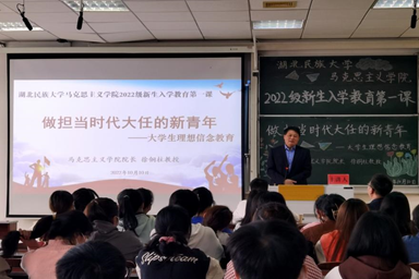 10月10日下午,我院于德智楼9B210教室开展以“做担当时代大任的新青年”为主题的2022级新生入学教育第一课。马克思主义学院院长徐铜柱应邀并担任主讲人。我院全体2022级新生参与本次活动。