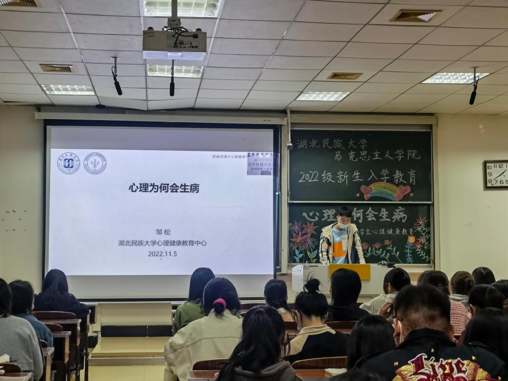 11月5日晚,我院于德智楼9B210教室开展以“心理为何会生病”为主题的心理健康教育活动。特邀金年会心理健康教育中心教师邹松进行直播授课,我院全体大一学生参与此次活动。