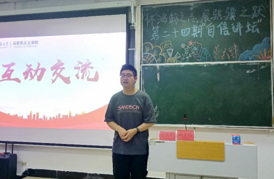 为充分发挥先进榜样的模范引领作用,激励更多青年学生奋发向上,5月29日,我院在德智楼9B208教室举办以“怀鸿鹄之志 展骐骥之跃”为主题的第二十四期“自信讲坛”活动。jinnian金年会向上向善好青年龙子鸣应邀担任主讲人,我院大一、大二全体学生参与此次活动。