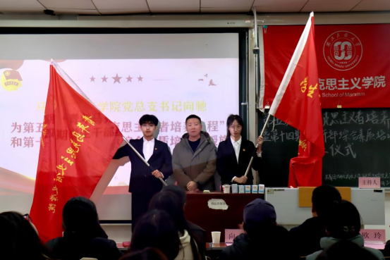 典礼在全体师生齐唱团歌中拉开序幕,杨婷带领全体成员重温入团誓词,欧玲宣读第五期“青年马克思主义者培养工程”暨第十四期学生干部综合素质培训班学员名单及班级管理办法;向驰为第五期“青年马克思主义者培养工程”培训班和第十四期学生干部综合素质培训班授旗。第十三期学生干部综合素质培训班优秀学员代兴和第五期“青年马克思主者培训工程”学员代表王树雪先后进行发言。