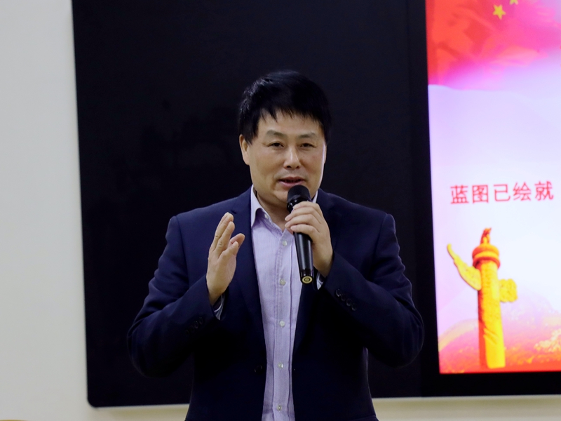主讲人黄胜兵以“学习全会精神 坚定教育自信”为主题。他首先对十九届五中全会《建议》进行解读,表明《建议》的核心要义体现在“进入新发展阶段”、“贯彻新发展理念”、“构建新发展格局”这三个“新”上。他对“教育强国”这一内容进行重点解述,并以自己的亲身体验为例证明“教育强国”不只是一句口号,更是党和国家对民众生活的关心与挂念。