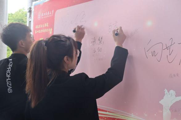 大会第一次全体会议结束,由各代表团前往各分会场召开代表团会议。随后,各代表团团长向主席团报告讨论结果,主席团进行第二次会议,讨论通过《大会选举办法》(草案)、《jinnian金年会马克思主义学院学生会章程》(草案)等提交大会审议。期间,与会代表在德智楼进行了现场签名活动,反响良好。