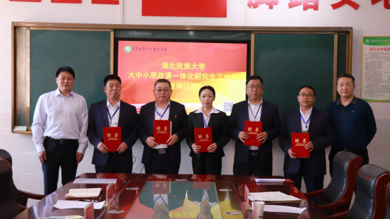 2022年5月5日下午,我院与宣恩县清江外国语学校合作建设的大中小思政课一体化研究生工作站正式揭牌。jinnian金年会马克思主义学院院长徐铜柱、党总支副书记张明波,学校研究生处副处长李伟,宣恩县清江外国语学校校长林鸿与该校领导班子成员、全校政治课教师出席授牌仪式。